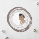 Gray and White Snowflakes Round Frame My First Christmas Baby Announcement Photo Card