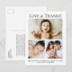 Express gratitude in style with the Simple Love and Thanks Typography Photo Grid Baby Boy thank you postcard! Featuring a clean design with a photo grid layout, this customisable card is perfect for showcasing your little one’s adorable moments while thanking friends and family. A heartfelt and modern way to share your appreciation. Three photos on the front in a clean and fresh style with baby's name and birth stats. Heart detail icon. ©lddesignloft Contact info@lddesignloft.com if you need assistance with this template.