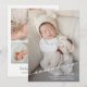Elegantly sweet birth announcements feature your favourite newborn photo in full bleed, with the word announcing script, baby's name and the birth stats on the front with 3 photos and your names on the back.