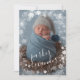 Elegantly sweet birth announcements feature your favourite newborn's photo with a border of white snowflakes and your baby's name in slanted white script on the front. The birth stats, 3 photos and your names on the back. MATCHING items in our store.