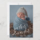 Elegantly sweet birth announcements feature your favorite newborn photo in full bleed, with baby's name in slanted white script and the birth stats on the front with 3 photos and your names on the back. MATCHING items in our store.