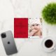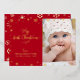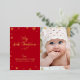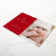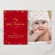 “My First Christmas.” A playful visual of real gold foil snowflakes and handwritten script typography, overlaying a red panel on the left and the photo of your choice on your right, help you usher in Christmas and New Year. On the back, additional champagne faux gold snowflakes overlay a red background. Feel the warmth and joy of the holiday season whenever you send this stylish and modern personalised photo real gold foil greeting card. Perfect for the newly proud parents to send to someone special!
