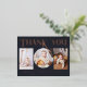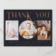 Baby Photo Thank You Modern Heart Birth Template Announcement Foil Postcard features a three of your favourite photos of your newborn baby boy or girl. The front features "Thank You" in hand lettered calligraphy script in real rose gold foil, accented with a love heart on a dark grey background. Below your photos add additional information such as your newborn baby's name and birth information. On the reverse add your personalised custom message of thanks from the parents and family of the newborn. PHOTO TIP: centre your photos before uploading to Zazzle. Designed by ©Evco Studio www.zazzle.com/store/evcostudio
