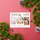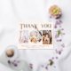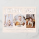 Baby Photo Thank You Modern Heart Birth Template Announcement Foil Postcard features a three of your favourite photos of your newborn baby boy or girl. The front features "Thank You" in hand lettered calligraphy script in real silver foil, accented with a love heart on a soft peach background. Below your photos add additional information such as your newborn baby's name and birth information. On the reverse add your personalised custom message of thanks from the parents and family of the newborn. PHOTO TIP: centre your photos before uploading to Zazzle. Designed by ©Evco Studio www.zazzle.com/store/evcostudio