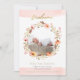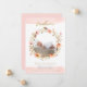 Adorable birth announcements that are sure to be noticed and loved dearly featuring trendy and modern, watercolor, wreath of pink floral wildflowers surrounding your baby's photo. Pink watercolor brushstrokes at top and bottom. Gold foil look "Welcome" at top, and templates for you underneath.