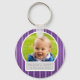 Baby Photo With Name Elegant Stripes Purple Key Ring