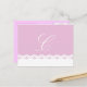 Pretty pastel pink background with white lace border. Personalise with your initial, monogram, or name.