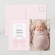 Baby Pink Bow Baby Girl Photo Birth Announcement Postcard