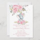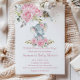 Baby Pink Floral Cute Elephant Girl Baby Shower Invitation