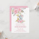 Baby Pink Floral Cute Elephant One 1st Birthday Invitation