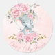 Baby Pink Floral Cute Elephants Twins Baby Shower Classic Round Sticker