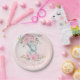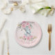 Baby Pink Floral Cute Elephants Twins Baby Shower Paper Plate