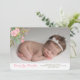 Baby Pink Floral Photo Birth Announcement