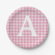 Baby Pink Gingham Custom Initial Paper Plate