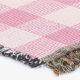 A quality printed throw has its advantages. This is a much finer weave throw than its loopier cousins, and though lighter, it is worth the investment for custom room accessorizing. The back is much prettier than the typical brown, and the fringe on the long sides very vivid, the selvage nicely done. Before photographing, I washed the throw in cold water, delicate, with a thicker woven throw the same size. On tumble dry low, this throw was dry in half the time as the other. This is a very practical quality if you use throws for furniture covers or to wrap up in frequently. The sleekness of the fabric makes it a great layer for accenting or protecting without the feeling of sitting on too much stuff. Perfect for napping or when you feel a light chill coming on. The color printing is beautiful and on this fabric, matched the design and color of my Photoshop image. This is an advantage for blending room fabrics and colors. The fringe on the short sides prints the colors from the design image and therefore varies from the side fringe. I streaked a white fractal line through the plaid pattern to give the illusion of weaving. This printed as crisp as an illusory thread, and put some white in the short side fringe, showing another advantage of print vs loomed- for artistic purposes, line lines, detail, and color integrity can be planned and preserved. My loomed throws have color limitations and more of a needlepoint texture. Print throws reproduce an exact image. The throw felt a little stiff straight out of the package, but this went away in the first delicate wash. Of course I searched the wash water for ink or bleeding and there was none.
