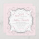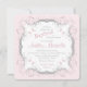 Baby Pink Grey Scroll Floral Baptism Invitation