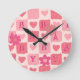 Baby pink heart round clock
