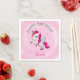 Cute white and pink unicorn cartoon over the pink background with white stars. Optional monogram