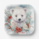 Baby Polar Bear Custom Text Holiday or Christmas Paper Plate