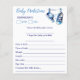 It's a boy blue baby shoes a cap simple modern watercolor casual font baby predictions and advice card. Baby boy baby shower games