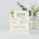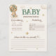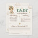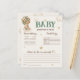 Teddy Bear with sage green beige ivory tan balloons Baby Shower party baby predictions and advice card with customisable text, featuring the sweetest bear soaring high with cute hot air balloons! This bohemian-style green teddy bear card is perfect for gender neutral baby shower parties, celebrating girl's or boy's arrival. Picture a cute baby boy teddy bear with a green bow on his neck, holding onto balloons with delight. Don't forget to explore the full collection! 💚