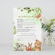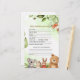 Make your celebration more fun and meaningful with this woodland animals baby shower baby predictions and advice card. This cute design features adorable animals like a fox, bear, bunny, and koala with soft greenery on a light background.
