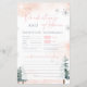 Baby predictions and advice game in winter theme with pine trees and snowflakes.
