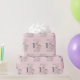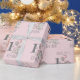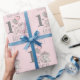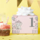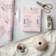 Cute little girl baby elephant 1st birthday party wrapping paper in pink and grey. This adorable little princess elephant has a wrapped birthday present and a bunch of pink and silver balloons and is sitting beside a customisable number 1. Personalised with your child's name and age. Contact us for help with customisation or to request matching products.