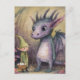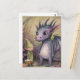 An adorable scene of a baby dragon and an elf with a basket full of eggs