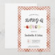 Fire up the grill and celebrate in style with this Neutral Baby-Q Baby Shower Invitation, perfect for a fun and casual barbecue-themed baby shower. Designed with a charming peach and brown gingham background, a playful skewer illustration, and modern typography, this invitation sets the tone for a relaxed and memorable Baby-Q celebration.