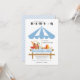 Unique barbecue baby shower invitation featuring a picnic table with a blue & white umbrella with a blue gingham back for a boys baby shower. Visit our shop to view this design in pink, red and green for a girls and neutral shower.