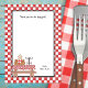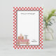 Adorable baby boy in a picnic basket, complete with chequered tablecloth, make this the perfect thank you note to send for your Baby Q Shower. Matching items in our BBQ section.