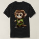 playful baby racoon T-shirt design featuring an adorable cartoon-style racoon holding a tiny acorn in its paws. The racoon is depicted with big, sparkling eyes, a mischievous smile, and fluffy fur, surrounded by a few forest elements like leaves, mushrooms, and twinkling stars. The design is vibrant, with earthy tones and a touch of whimsy, perfect for nature lovers or anyone who adores cute animal-themed clothing.
