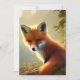 A flat greeting card for wildlife lovers, featuring AI generated digital painting of an adorable baby red fox in a mountain setting.