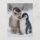 Baby Reindeer and Penguin Christmas Holiday Postcard