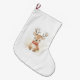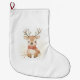 Christmas stocking with a baby reindeer sitting in the snow wearing a red scarf