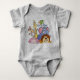This is adorable! A good quality romper perfect for summer. I bought the 12 month size for a 7 month old baby, so it's a little large right now. This looks better than the picture. The cartoon animals are very clear even on the grey background. Great job!