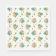 A Pattern Of Baby Rose Tips in Yellow, Pink And Teal With Green Leaves Falling Down Paper Party Napkins