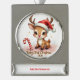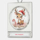 Commemorate baby’s very first holiday with this darling keepsake! A sweet little reindeer fawn wearing a tiny red Santa hat sits by a candy cane and beams with big, sparkling eyes. Soft blush pinks and snowy sparkles surround the words “Baby’s First Christmas 2025” in whimsical script.