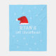 Baby`s First Christmas Blue Santa Hat Snowflake baby blanket. Cute baby first Christmas design with a Santa hat, snowflakes and a baby name in a white script - personalise with your baby`s name. The background is blue.