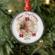Celebrate your little one’s first holiday season with this elegant silver-framed Christmas ornament featuring a soft gold wreath and red poinsettias around your baby’s photo. Simply upload your own image and personalize the text to create a timeless keepsake. This classic design makes a heartfelt Christmas gift for new parents, grandparents, or anyone looking to mark Baby’s First Christmas with a beautiful, customized ornament.