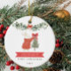 Celebrate your little one’s magical milestone with this personalised baby’s first Christmas ornament. Featuring an adorable bunny in a festive red coat decorating a Christmas tree with a bow, this sweet design is framed with greenery and holiday accents.