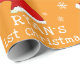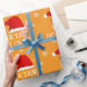 Baby`s First Christmas Red Santa Hat Snowflake Wrapping Paper. Celebrate Baby's very first Christmas with this adorable personalized wrapping paper! Featuring a festive design with a cute Santa hat, and delicate snowflakes on a warm orange background, this unique gift wrap adds a special touch to all presents. Make first holiday season unforgettable with beautifully wrapped gifts. Perfect for parents, grandparents, and loved ones creating cherished memories.