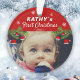 Cute Baby`s First Christmas Santa Hat Snowflake Pine Photo Ornament. Pine tree branches with Santa hats and snowflakes. Personalise the ornament with your baby`s photo, name and year of birth. A sweet keepsake for the baby`s 1st Christmas.