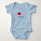 Baby`s First Christmas Santa Hat Snowflake Blue baby Bodysuit. Cute baby first Christmas design with a Santa hat, red snowflakes and a baby name - personalise with your baby`s name.