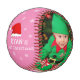 Baby`s First Christmas Santa Hat Snowflake Photo Pink Baseball. Cute baby first Christmas design with a Santa hat, snowflakes, baby name and baby's photo - personalise with your baby`s name and photo.