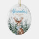 Celebrate your little one’s first holiday season with this adorable personalized Christmas ornament. The design features a sweet watercolor reindeer wearing a blue bow, surrounded by snowy pine trees and delicate silver snowflakes. This design features your child’s name easily customizable for a personal touch. Perfect for hanging on the tree or gifting to new parents, this ornament adds a charming woodland touch to any Christmas décor.