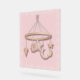 Create a dreamy atmosphere for any nursery with this soft pastel design featuring a baby’s mobile with moons, stars, and gentle shapes. Set against a delicate pink lace-inspired background, this artwork brings warmth and sweetness to any baby space.