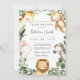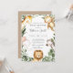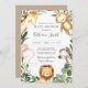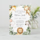 Invite your guest with our elegant and modern baby safari animals baby shower invitation features greenery eucalyptus garland and watercolor safari animals. Personalise with your baby shower details in simple layout and elegant handwritten style font.