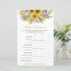 Baby Scattergories Baby Shower Game PRINTED sunflower theme, sunflower bridal shower, sunflower, sunflower template